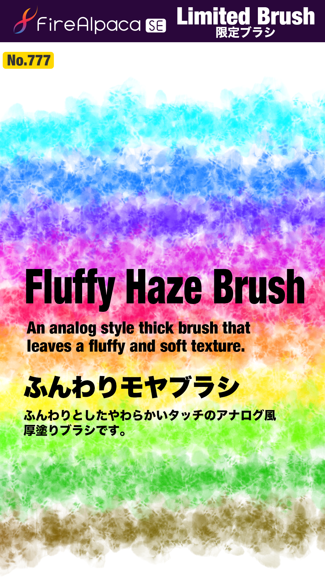 素材(ブラシ) 「ふんわりモヤブラシ」をリリース【FireAlpaca SE 限定ブラシ】 2026.01.21 ✨🖌FireAlpaca SE 限定ブラシ🖌✨ 「ふんわりモヤブラシ」をリリースしました。 ふんわりとしたやわらかいタッチのアナログ風厚塗りブラシです👍 ※FireAlpaca SE でのみダウンロードできる限定ブラシになります。 Post Share Hatena RSS Pin it